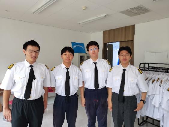 同学们身着机长服装开始志愿服务