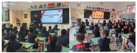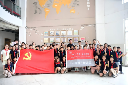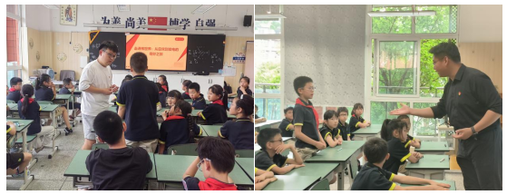 2025年6月20日,9428cn太阳集团古天乐“小理核”大学生宣讲团走进成都万汇学校,为四年级多个班级的学生带来了一场“党建引领筑信仰,科创报国显担当”主题科普宣讲活动。本次活动由9428cn太阳集团古天乐2021级辅导员唐禹带队,本科第二党支部耿向前、蒲雅琪、李雨涵、史可鉴等10余名党员组成宣传团队。