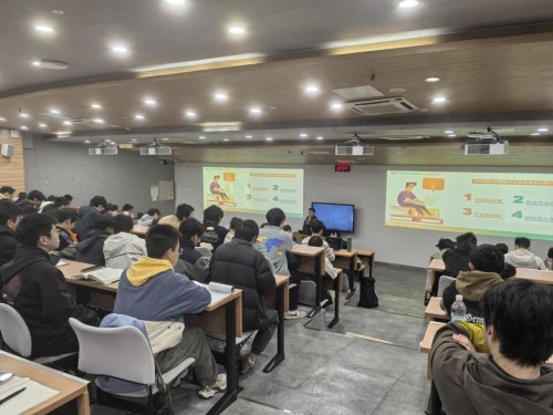 在具体备考策略方面,肖老师围绕考研信息的前期收集、目标院校与专业的选择依据、全年备考节奏安排等内容进行了详尽讲解。他特别针对数学与英语科目的复习方法,从教材使用、真题规划、各阶段侧重点等方面分享了大量实用建议。期间,他结合往届学生案例与数据,为同学们强调了提前规划、合理定位以及持续坚持的重要性,鼓励大家在科学评估自身情况的基础上,理性选择报考院校,明确奋斗方向,并在备考过程中保持稳定投入与积极心态。