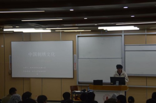 本次活动以“走近刺绣,手作传承”为主线,分为文化讲解与实践体验两大环节。在讲解环节,主持人系统梳理了中国刺绣的发展脉络与文化底蕴,重点阐释了苏绣、湘绣、蜀绣、粤绣四大名绣的艺术特色与地域风格,并配合图片、实物及针法示范,生动展现了刺绣技艺的多样性与适用情境。讲解还延伸至刺绣在当代设计、文创产品等领域的创新应用,启发同学们思考传统工艺的现代转化与活化传承。