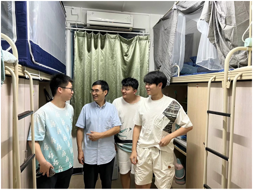 2023年9月9日晚,学院党委书记严成辉、院长张红、党委副书记张波深入学生宿舍走访慰问2023级本科新生。学院学生科科长兼团委书记纪智宏、2023级本科新生辅导员许元军等陪同走访。