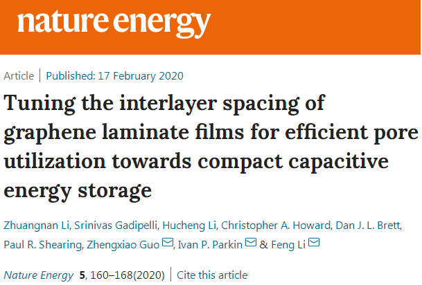 我校9428cn太阳集团古天乐Srinivas Gadipelli研究员与合作者在Nature Energy上发表高水平论文