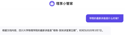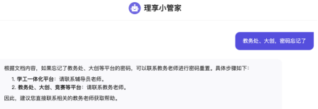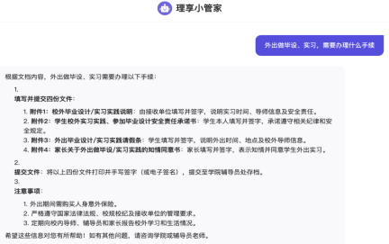 “理享小管家”作为一款接入DeepSeek的AI辅导员,虽然无法完全替代人类辅导员,但可以成为辅导员们的得力助手。它能够24小时随时与学生进行互动,解答他们在日常事务、学业生活等方面的问题。通过这一智能互动平台,辅导员们可以从琐碎的事务性回答中抽身,集中精力做好主职主业,更好地服务学生的成长需求。随着同学们与“理享小管家”的积极互动,AI辅导员的知识储备也将不断丰富和更新,未来能够提供更加精准、全面的服务。