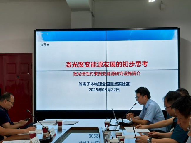 签约仪式后,双方举行了聚变能研讨会。聚焦激光聚变能源发展,等离子体物理全国重点实验室的郭亮副研究员和陈伯伦副研究员分别作了“激光惯性约束聚变能源研究设施项目简介”和“高通量聚变和能源应用中的核诊断技术”的学术报告,随后双方人员就激光聚变领域的前沿问题进行了深入讨论,并达成了初步合作意向。