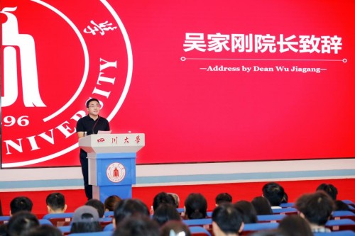 2025年9月11日下午3点,学院2025级研究生开学典礼在望江校区东三教演播厅举行。学院党委书记严成辉、院长吴家刚、党委副书记张波、副院长刘宁、原子核科学技术研究所副所长韩纪锋、原子与分子物理研究所副所长张友君、教师代表蒋刚、学院全体研究生辅导员、2025级全体研究生等出席本次开学典礼,典礼由学生科科长兼团委书记吴海英主持。