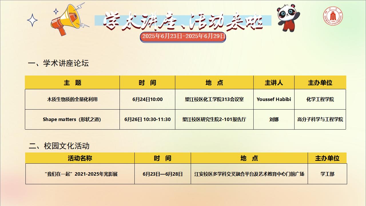 学术讲座论坛及校园文化活动预告(2025年6月23日-2025年6月29日)