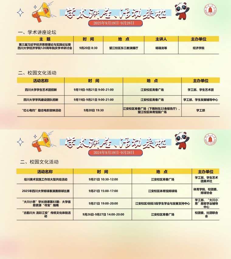 学术讲座及校园活动文化预告(9月19日-9月28日)