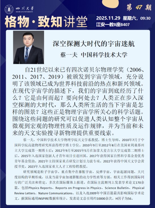 【学术报告】格物·致知讲堂第47期:深空探测大时代的宇宙迷航